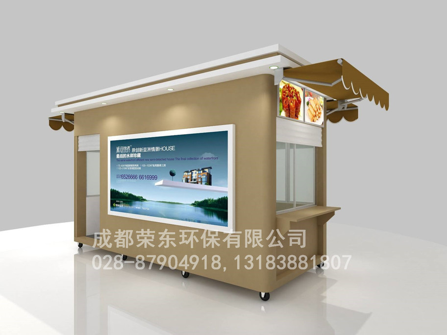 8、售货亭外顶:中间为方通架,表层为优质不锈钢板;