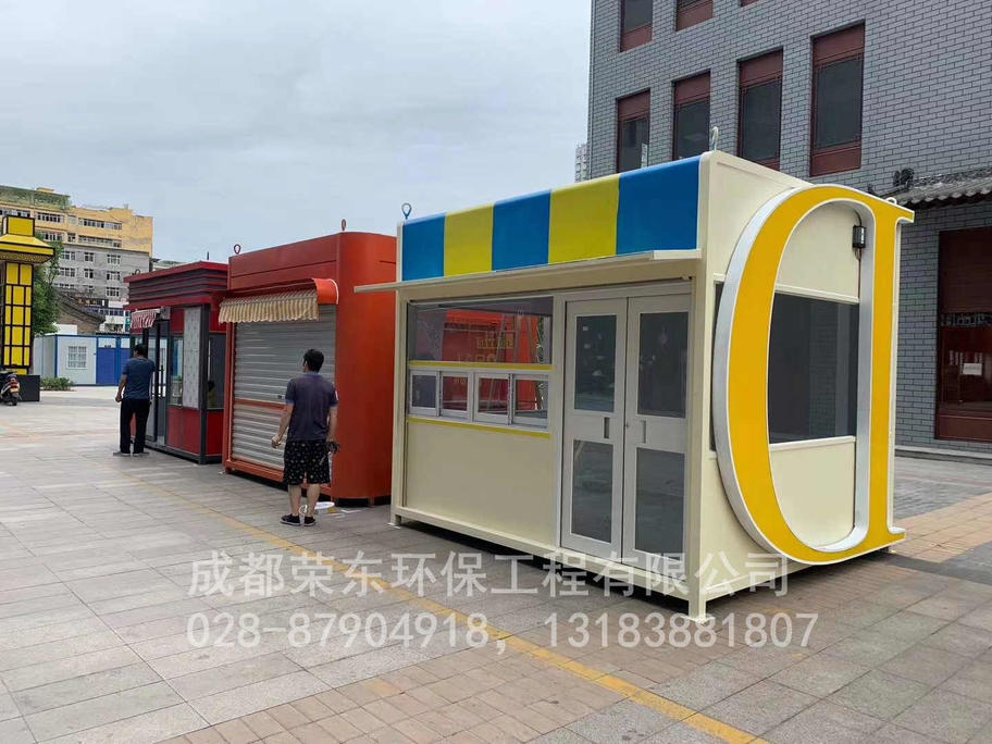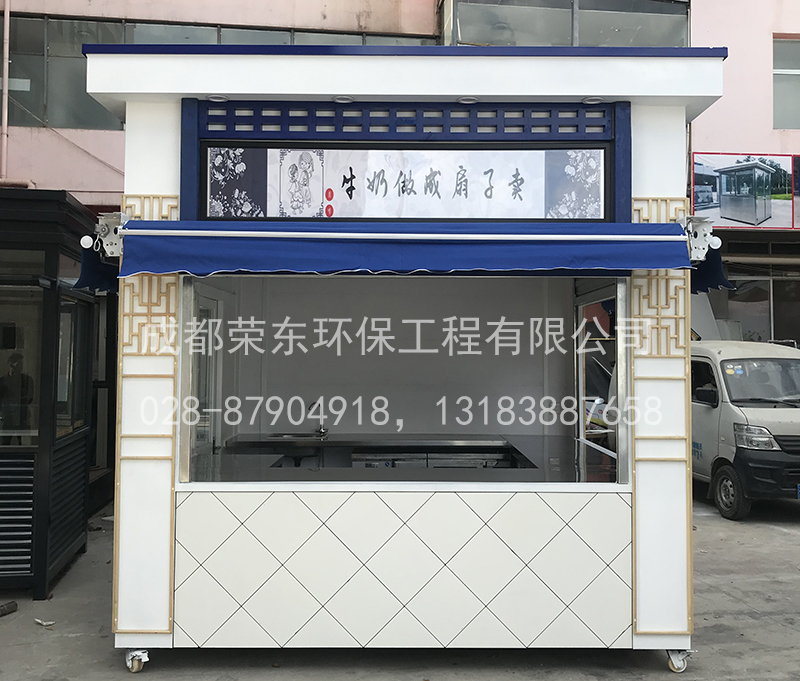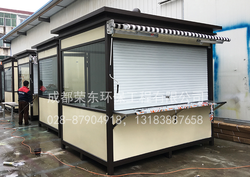 5、售货亭岗亭内壁:中间为方通架,内外衬木板;