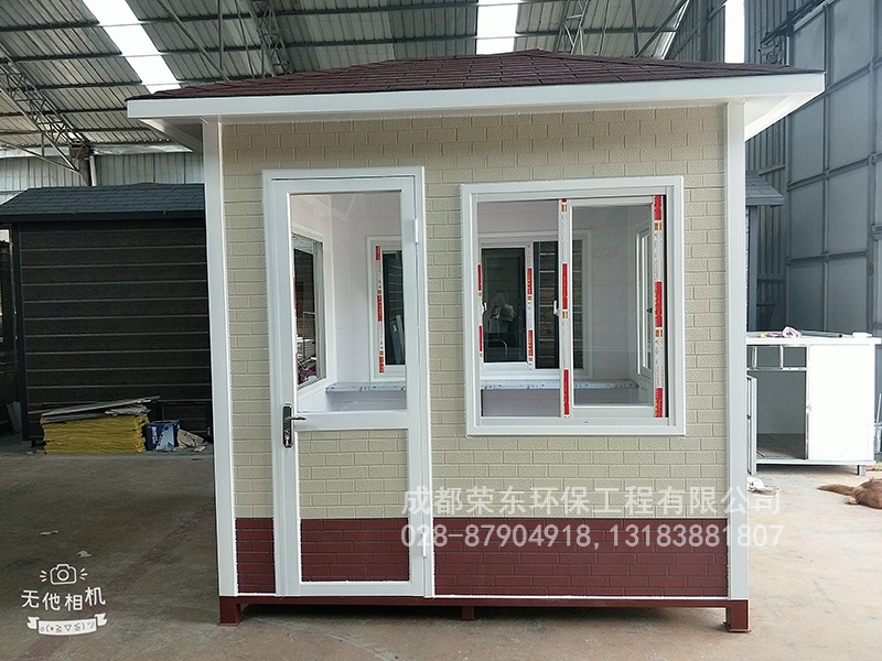 1、主体骨架:岗亭采用10#镀锌方管做支撑柱、其他规格优质钢管为龙骨满焊接成型,柔性强不易损坏,强度高,抗风压,方便移动不易变形。