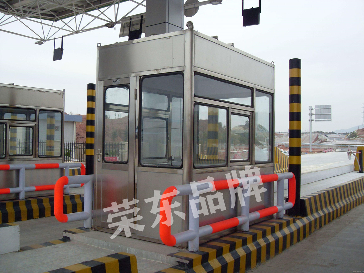 4.外框:收费亭外框采用不锈钢沙光板钣金成形。收费亭外框透明板采用 5.0mm 厚透明 钢化玻璃。透明板与外框的组合采用防水、防尘垫胶。
